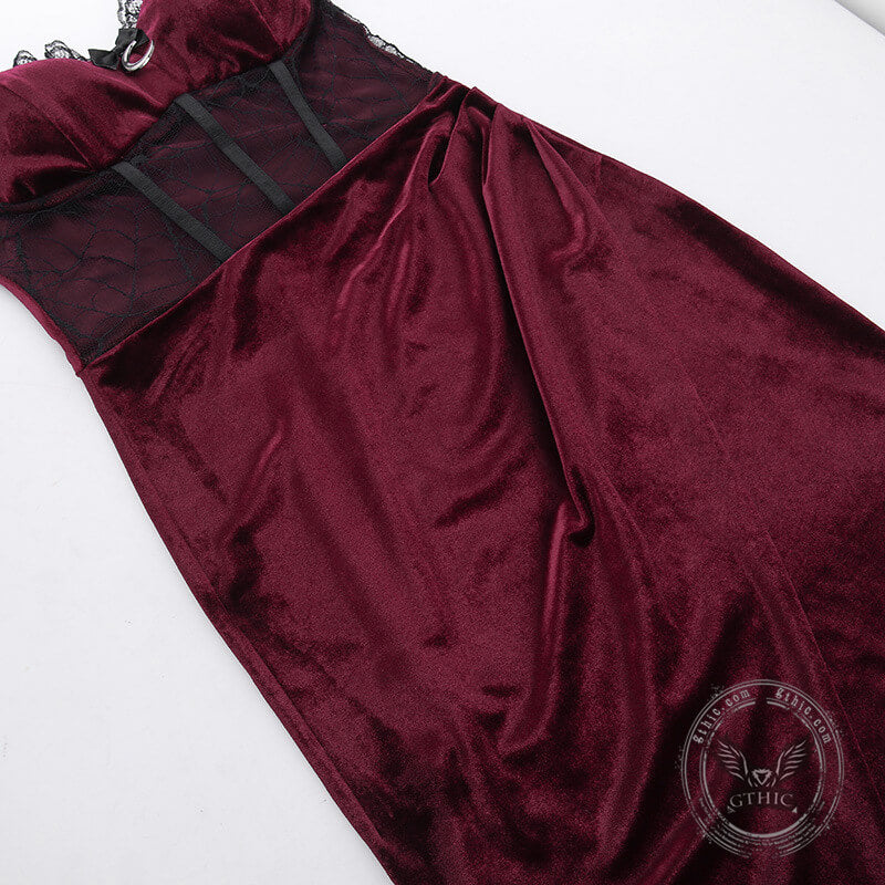 Crafted from sumptuous velvet, this maxi dress not only looks captivating but feels incredibly comfortable against your skin. The slip dress style ensures ease of wear, and the striking Gothic design ensures you stand out in the crowd. Whether you're headed to a special event or a romantic dinner, this dress exudes confidence and charm. It's the perfect choice to express your unique style with a hint of dark elegance.